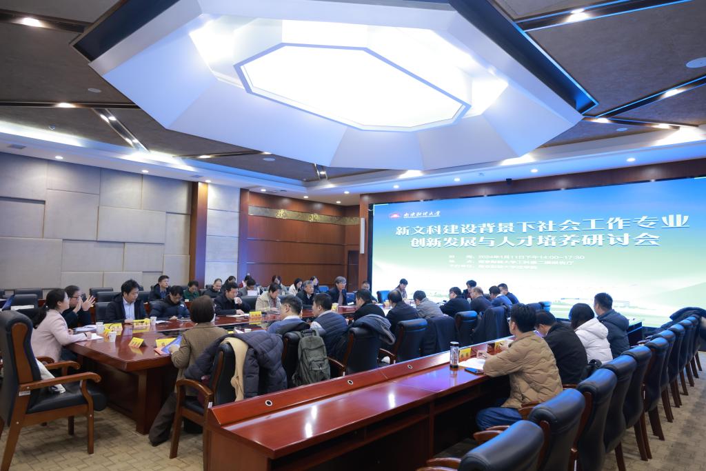 2024年1月11日下午,公司在工科楼二楼会议室,召开了“新文科建设背景下社会工作专业创新发展与人才培养”研讨会。会议围绕新时代社会工作发展前景与办学定位、社会工作专业特色与人才培养模式、专业课程体系完善与人才培养方案优化等主题展开研讨。校外与会专家有中国社会工作教育协会副会长、南京大学社会公司彭华民教授,以及来自南京大学、东南大学、河海大学、南京师范大学、南京理工大学、南京航空航天大学、南京农业大学、苏州大学、南京邮电大学、江苏师范大学、江苏省社科院社会学所以及江苏省委党校等高校和科研院所的社会工作专业负责人。校内与会专家有:公司党委常委、纪委书记李茜,党委员工工作部部长、员工处处长韩力争,法制办副主任(主持工作)吴庚祐,团队建设办公室、高水平建设办公室副主任胡唐明,教务处副处长、实验实践教学管理中心主任万兴,宣传部副部长龚莉红,公司党委书记黄建国、经理胡宜奎、副经理蔡养军、副经理陈红梅、社工系全体教师以及员工代表。公司党委书记黄建国主持了开幕式环节。