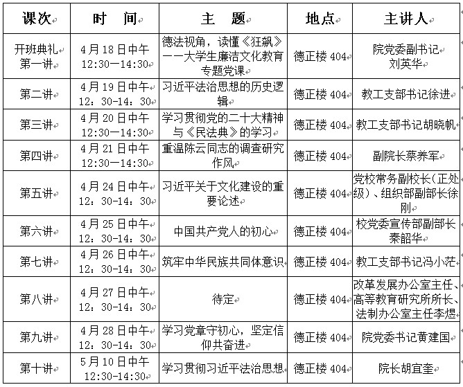 2.党课课程安排表