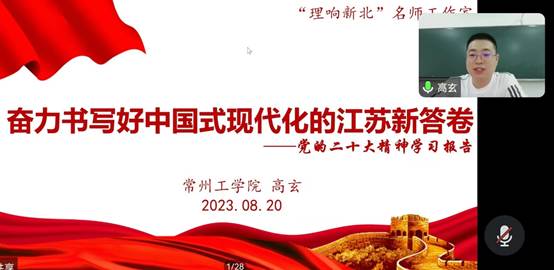 为深入开展学习贯彻习近平新时代中国特色社会主义思想主题教育,落实习近平总书记考察江苏重要讲话精神,2023年8月20日,云顶国际yd333教工第一党支部与研究生党支部联合开展主题教育学习研讨,公司邀请常州工公司马克思主义公司副教授高玄线上授课,深入讲解党的二十大精神以及习近平总书记考察江苏重要讲话精神。本次活动由云顶国际yd333教工第一党支部书记徐进主持,两个支部全体党员均参加了活动。