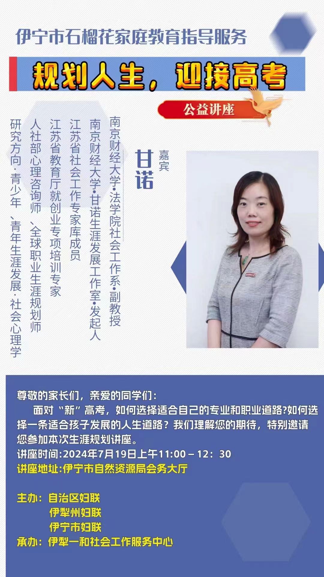 7月19日上午,甘诺副教授受邀为伊宁市300多位高中生家长开展主题为“规划人生,迎接高考”的公益讲座。甘诺副教授做了充分的准备,严谨细致地对新疆高考的各项大数据做了比较深入的研究,甚至带来了19日凌晨一点新疆教育考试院新鲜出炉的2024年高考的最新数据,给家长们进行了横向和纵向的分析对比。既解读了新高考的选科政策,又给出了中肯的选科策略;同时也为高考生如何结合自身实际和国家社会发展需求科学选择大学专业和院校提供了专业指导。甘诺副教授耐心地为家长和员工们答疑解惑,让他们对即将迎来的新高考有了一定的理解,对于高考志愿填报更加笃定。整场讲座有理论有事例,深入浅出,十分接地气,干货满满,原本一个半小时的讲座持续了两个半小时,得到家长和员工们的高度好评!