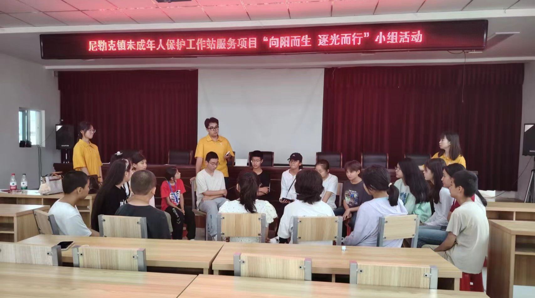 公司社工系“萤火虫小分队”的队员们,在尼勒克镇未成年人保护工作站作为社工志愿者,开展暑期实践和服务。服务内容主要有:一是家庭探访,开展困境儿童的需求评估和入户关爱服务;另一方面运用社会工作专业方法,对35名来自维吾尔族、哈萨克族、汉族等多民族的儿童,按照不同年龄阶段划分为两组,开展小组工作服务,为少年健康成长赋能。