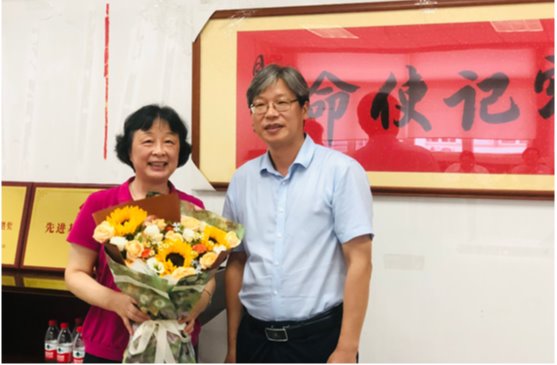 经理胡宜奎、公司党委副书记刘英华代表公司对已光荣退休并受邀关心青年教师和员工成长的李宁、徐文超两位教授表示热烈欢迎和衷心感谢,并敬送鲜花。