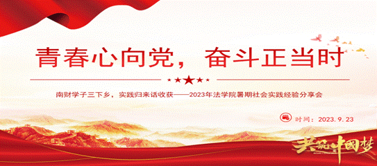 2023年9月23日晚,公司2023年暑期社会实践经验分享会在德正楼模拟法庭召开。公司教师代表相鹏老师,院分团委书记田旭光老师,院分团委员工副书记薛清源、李雅静出席分享会,分享会由李阳、刘思含主持。