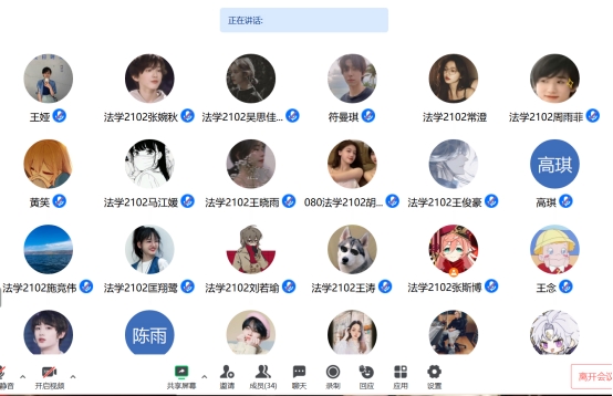 为培育员工的法学思维,拓展他们的阅读视野,法学2102班于2023年7月20日、8月6日以及8月26日通过腾讯会议举行了三次暑期班级共读活动。在组织委员张斯博的主持下,法学2102全体同学分阶段、分角色地参与读书活动,班主任王娅老师出席了每次活动。