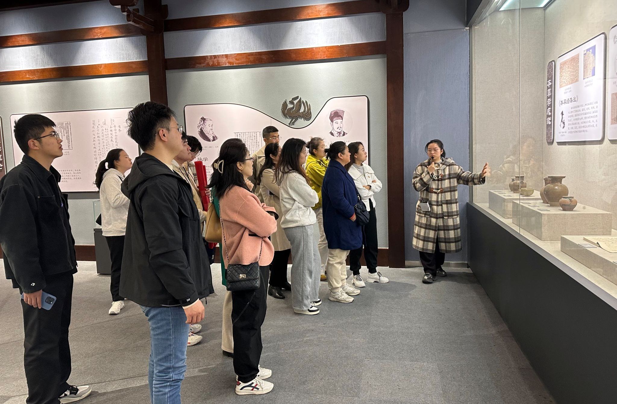 师生被博物馆内丰富的馆藏标本、翔实的历史资料吸引,被古人“人与天地相参”“顺应节气调养身心”“正气存内邪不可干”等朴素的医学和哲学思想所折服。参加研学活动的法学2402班路鸿睿同学说,“我看到大自然中的植物、动物甚至矿物皆可入药,体会着人与自然相应、相通、相参的智慧,这些让我对中医药和中国传统文化产生了浓厚的兴趣,收获颇丰。”