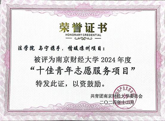 为大力弘扬志愿服务精神,引导全校同学积极参与志愿服务活动,营造“奉献、友爱、互助、进步”的和谐校园氛围,校团委和校青年志愿者协会联合主办了2024年青年志愿者行动先进典型评选活动。经过个人申报、公司初审及现场答辩展示等环节,公司社会工作系“与宁携手,情暖凉州”志愿服务团队脱颖而出,荣获“十佳青年志愿服务项目”称号。