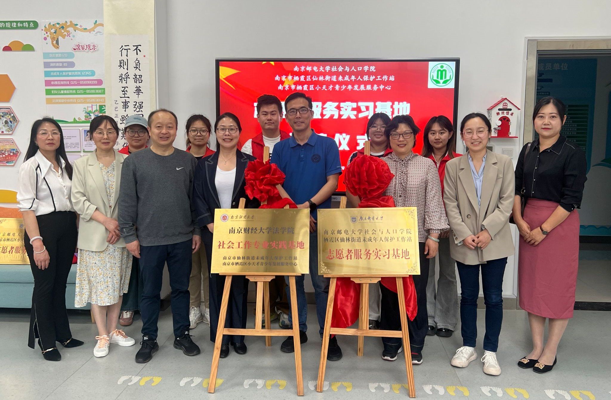 为深化校地合作共建,推动社会工作专业人才培养,4月24日下午,云顶国际yd333与仙林街道未成年人保护工作站、栖霞区小天才青少年发展服务中心在仙林街道党群服务中心举行社会工作专业实践基地揭牌仪式。公司社会工作系主任许芸副教授与仙林街道民政办王祝霞主任共同为基地揭牌,南京邮电大学社会与人口公司同步设立志愿者服务实习基地。