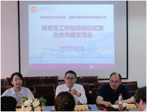 为进一步加强与省级研究生工作站的深入合作,提高研究生的培养质量,促进研究生高质量就业,6月21日上午,公司在德正楼404会议室与智器云南京信息科技有限公司举办研究生工作站进站启动仪式暨合作共建交流会。智器云南京信息科技有限公司总经理王海波、副总经理吕志军、申报主管张皖俊、策划汪辰雨,我党政班子领导,刑法学科带头人王骏教授,青年教师代表席若、李艳飞、王娅,以及研究生代表出席此次会议。本次工作站进站仪式暨交流会由公司党委副书记刘英华主持。