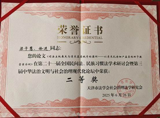 6月28日,第二十一届全国民间法、民族习惯法学术研讨会暨第三届中华法治文明与社会治理现代化论坛在天津市举行。本次研讨会由天津社会科公司主办,天津社会科公司法学研究所承办,CSSCI来源集刊《民间法》编辑部协办。来自中国社会科公司、南开大学、厦门大学、华东政法大学等高校和科研院所的一百多名专家学者与会。公司法律系主任徐进老师和2024级宪法与行政法学硕士研究生梁子慧受邀参会。